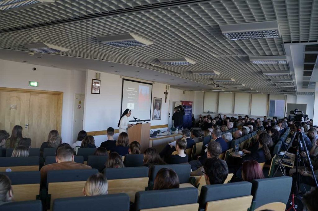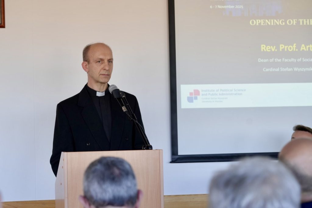 Rektor UKSW w sposób szczególny powitał „najznamienitszych prelegentów tego wyjątkowego wydarzenia” – s. prof. Helen Alford OP, przewodniczącą Papieskiej Akademii Nauk Społecznych, prof. George’a Weigla, wybitnego teologa, autora monumentalnej biografii Jana Pawła II, prof. Iana Bensona z The University of Notre Dame Australia, prof. Briana Scarnecchi’ę, wiceprzewodniczącego  Society of Catholic Social Scientists i prof. Johna Czarnetzky’ego, rektora Ave Maria School of Law.