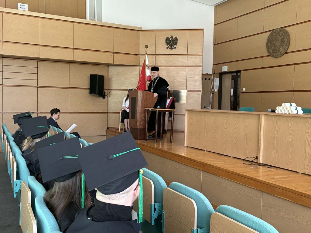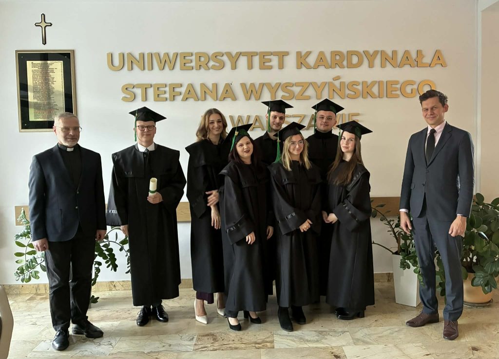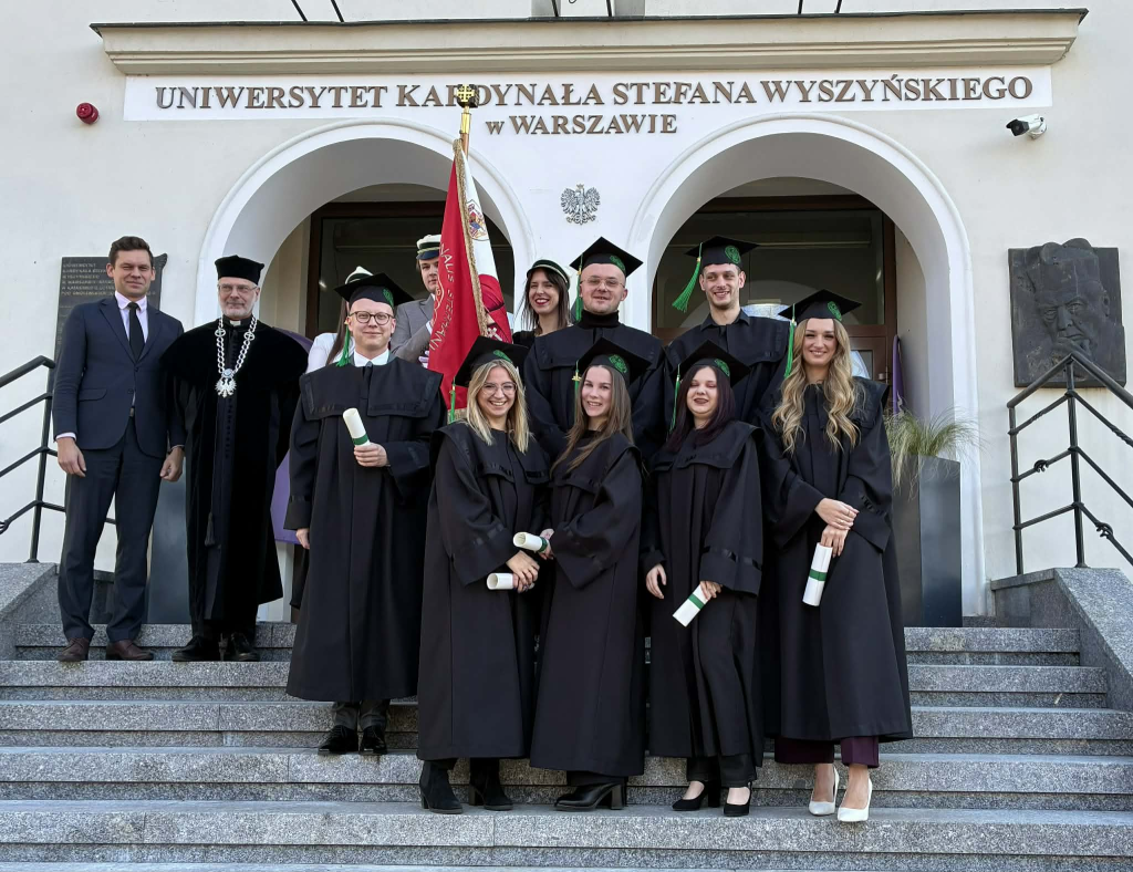 Dziekan wręczył absolwentom symboliczne dyplomy. Następnie głos zabrał przedstawiciel absolwentów – p. mgr lic. Maciej Urbański, który w swym wystąpieniu podziękował za przekazaną wiedzę, życzliwość i wsparcie. Oficjalną część uroczystości zakończyło odśpiewanie pieśni „Gaudeamus igitur”, po czym zebrani udali się na tradycyjne wspólne zdjęcie na schodach starego gmachu UKSW. Po uroczystości absolwenci spotkali się z rodzinami i bliskimi na poczęstunku pod Aulą Jana Pawła II.