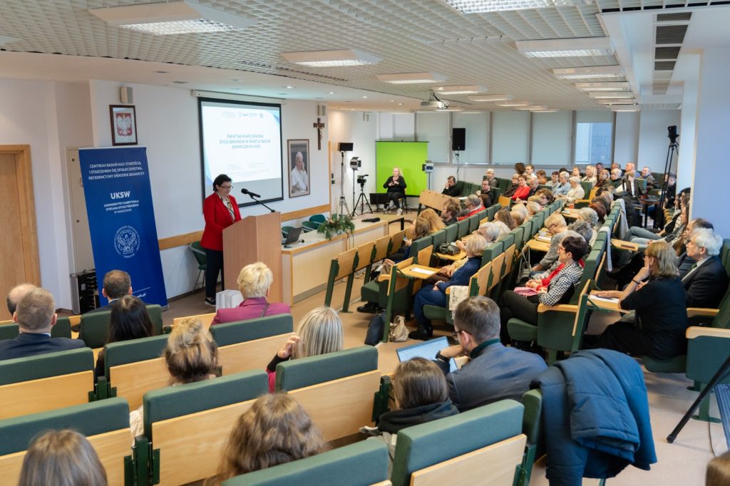 Uczestników spotkania powitała dr Elżbieta Bojanowska, dyrektor CBS ROB UKSW. Jak wyjaśniła, „dynamika zmian społecznych powoduje, że jednym z ważniejszych wyzwań dziś jest kwestia starzenia się społeczeństwa”. Dlatego Referencyjny Ośrodek Badawczy UKSW realizuje projekt „Świat na miarę seniora seniora – sytuacja osób starszych w Polsce” finansowanego ze środków Ministerstwa Nauki i Szkolnictwa Wyższego (umowa: MEiN/2023/DPI/2077), , badający tę problematykę, a konferencja jest poświęcona prezentacji wyników badań jakościowych i ilościowych, przeprowadzonych przez ROB UKSW po raz drugi.