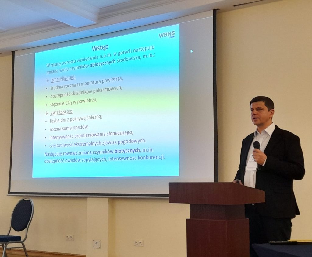 Dr Piotr Kiełtyk zaprezentował wyniki badań roślin tatrzańskich w referacie pt. Zmiany w morfologii i alokacji biomasy wybranych gatunków roślin naczyniowych wzdłuż gradientu wzniesienia n.p.m. w Tatrach.