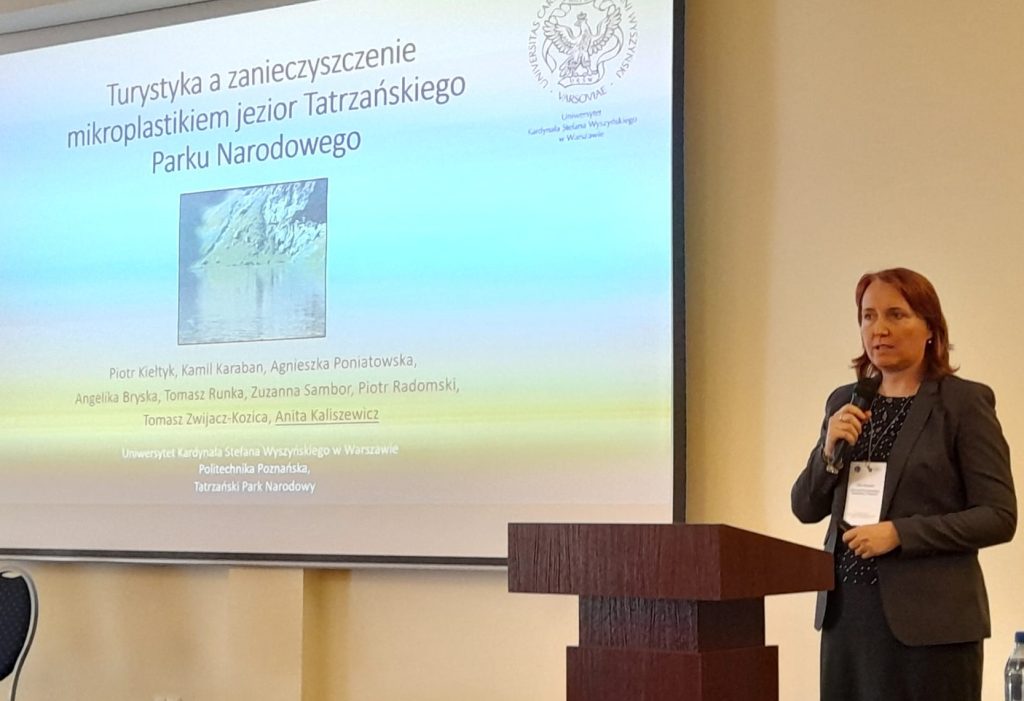 Dr hab. Anita Kaliszewicz, prof ucz. przedstawiła w imieniu zespołu referat pt. Turystyka a zanieczyszczenie mikroplastikiem jezior Tatrzańskiego Parku Narodowego.