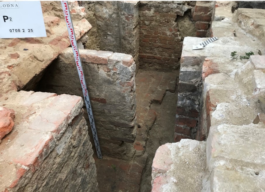 Odsłonięte ślady murów piwnic z posadzką przy ścianie nośnej gmachu szkoły Roeslerów Zdj. Bożena Józefów-Czerwińska