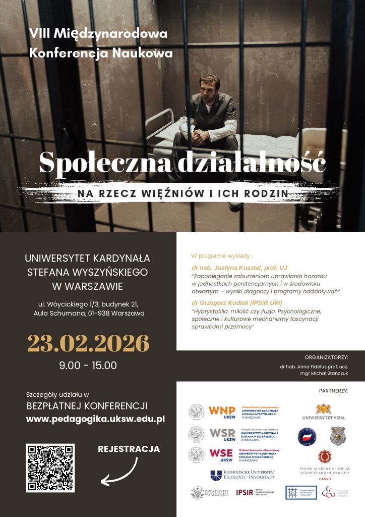 Wydział Nauk Pedagogicznych UKSW zaprasza na VIII Międzynarodową Konferencję Naukową poświęconą społecznej działalności na rzecz więźniów i ich rodzin.