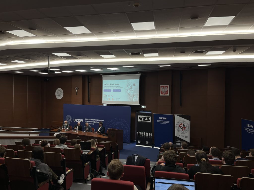 – Dzisiejsze spotkanie ma wymiar szczególny. To okazja do refleksji naukowej, ale też do zatrzymania się nad historią środowiska, które przez dekady kształtowało postawy obywatelskie, społeczne i akademickie kolejnych pokoleń Polaków – mówiła dr hab. Anna Fidelus, prorektor ds. studenckich i kształcenia, otwierając konferencję w imieniu ks. prof. Ryszarda Czekalskiego, rektora UKSW.- Czterdzieści pięć lat działalności to czas pełen wyzwań, odwagi, zaangażowania i nieustannego dążenia do wolności, zarówno w wymiarze akademickim jak i szerzej – społecznym.