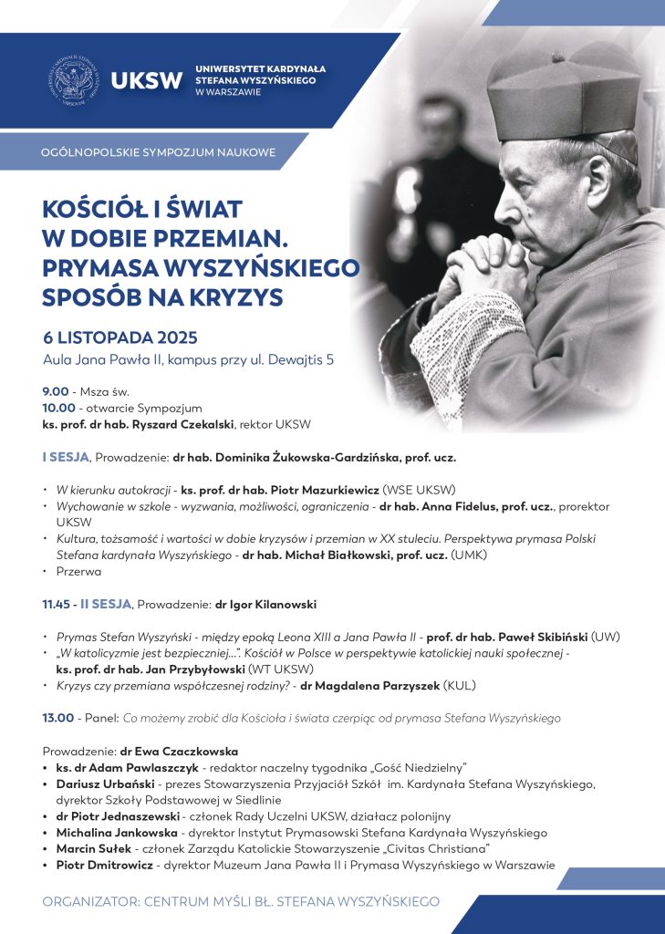 Centrum Myśli bł. Stefana Wyszyńskiego UKSW zaprasza na konferencję, która odbędzie się 6 listopada w auli Jana Pawła II na kampusie przy ul. Dewajtis 5. Rozpoczęcie o godz. 10.00.