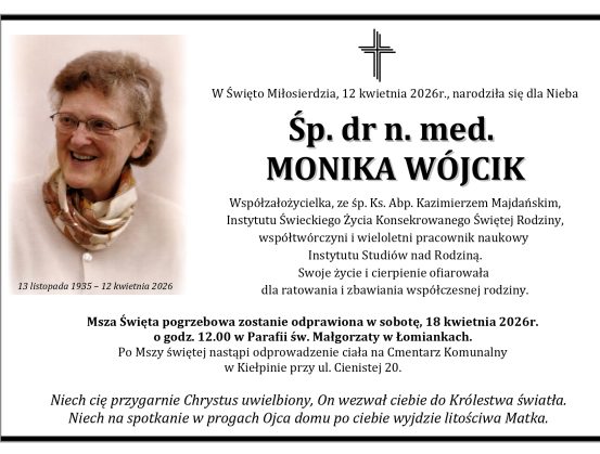 Zmarła dr n. med. Monika Wójcik, wieloletni pracownik oraz wicedyrektor Instytutu Studiów nad Rodziną Akademii Teologii Katolickiej w Warszawie.
